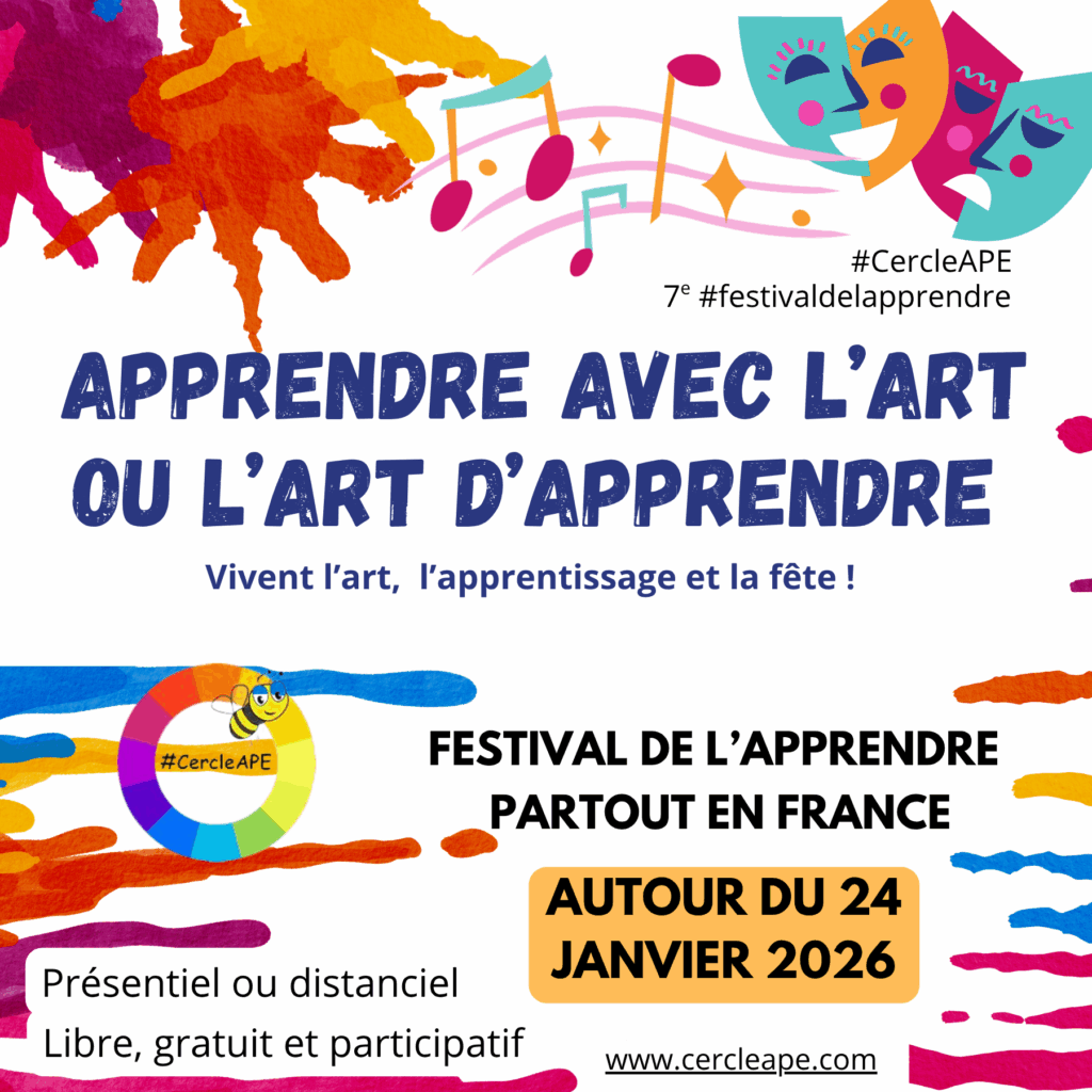 « Apprendre avec l’art ou l’art d’apprendre ! », telle est la thématique retenue par le Cercle APE pour le prochain septième #festivaldelapprendre national autour du 24 janvier 2026, en résonance avec le Learning Planet Institute. L’art est une promesse de découverte, de créativité, de rencontre, de diversité, d’exigence, de dépassement et d’émotions ; autant de repères fertiles pour apprendre ensemble.